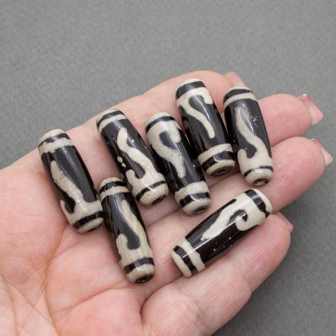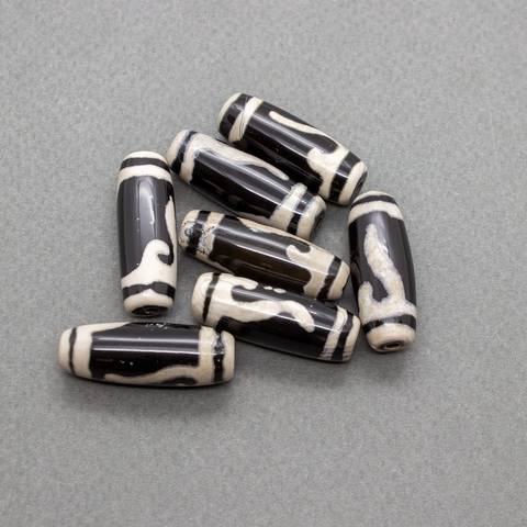 Агат Дзи Золотой Ключ 30х10 мм черная бусина оливка веретено
