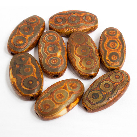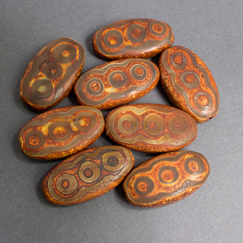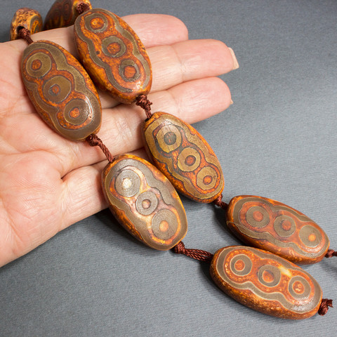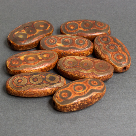 Крупные бусины Дзи 6 глаз - поверхность бусин шероховатая, матовая с травленным узором.