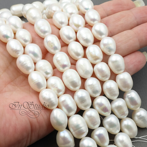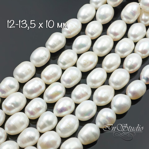 Жемчуг натуральный культивированный 12-13,5х10 мм белый