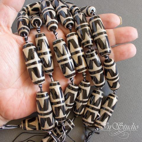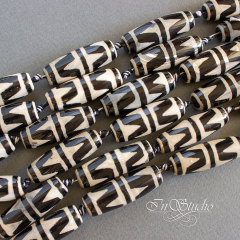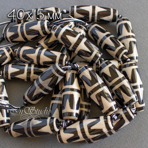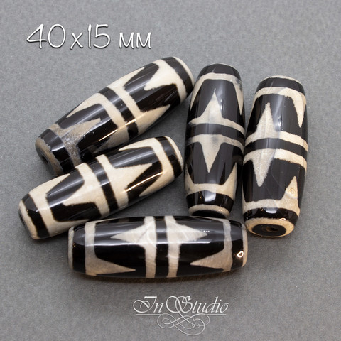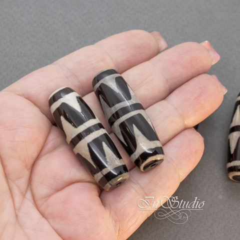 Бусина Дзи двойной тигриный клык 40 мм черно белая