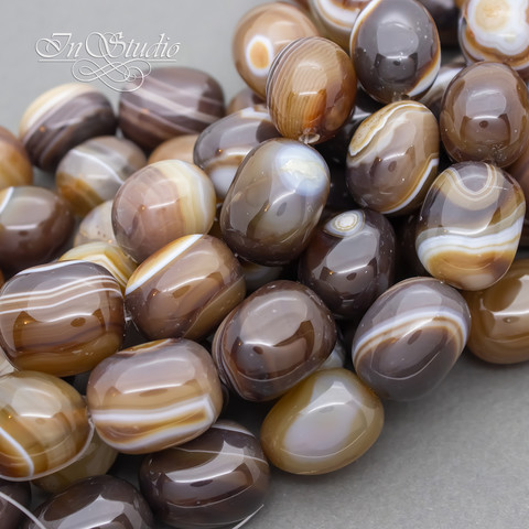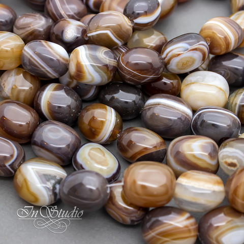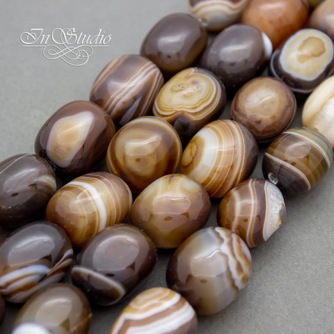 Агат Ботсвана коричневый полосатый 19 мм крупные овальные бусины
