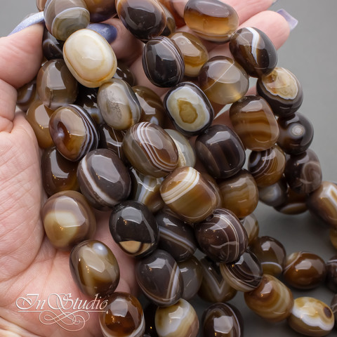 Очень крупные бусины из натурального коричневого агата ботсвана.