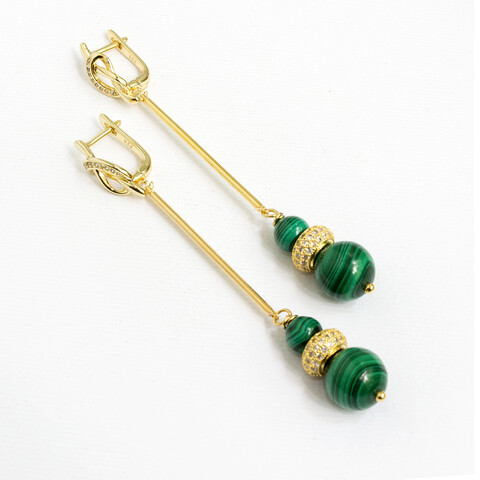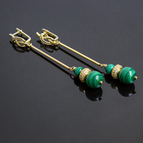 Серьги Эйфория натуральный малахит позолота цирконы