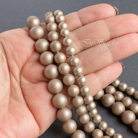 Пепельно бежевый матовый жемчуг Майорка - пастельный, пудровый цвет оттенка Мокко, кофе с молоком.