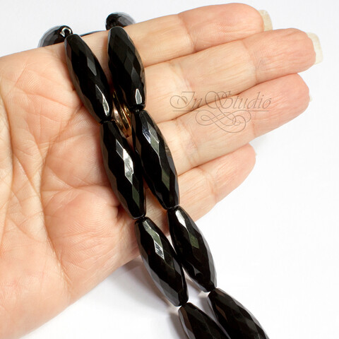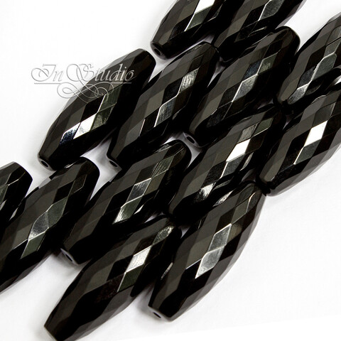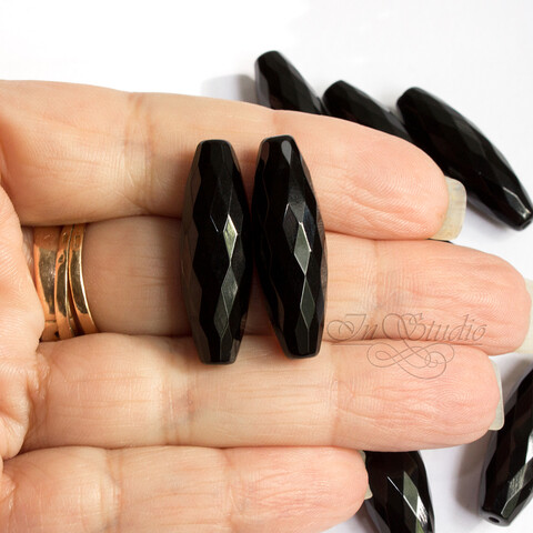 Агат черный крупные бусины оливки 30х10 мм с оганкой