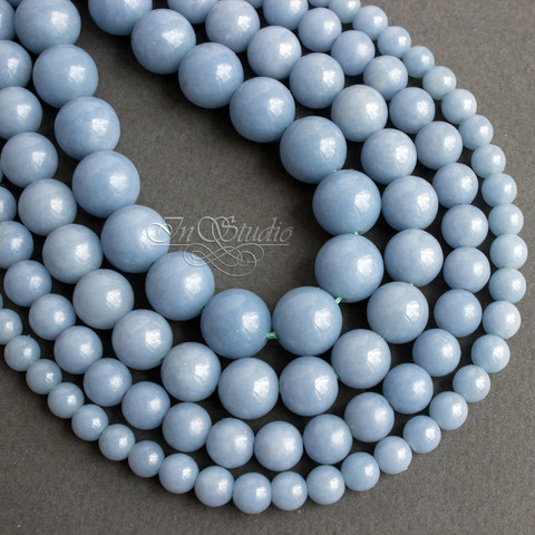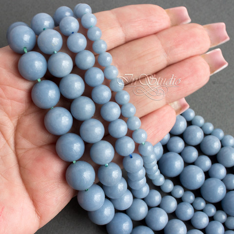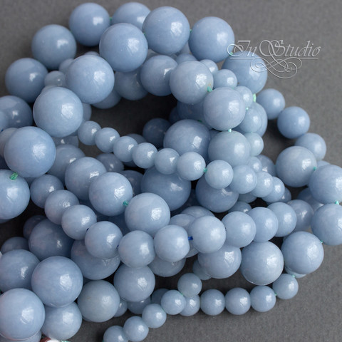 Бусины из натурального ангелита, голубого цвета. Структура плотная фарфоровидная. Высокое качество бусин, отличная полировка. Глубокий цвет, без просветов.