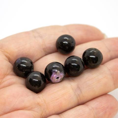Бусины 11 мм из натурального природного ЧАРОИТа. Преобладает ЧЕРНЫЙ ЦВЕТ чёрных лучистых кристаллов щелочного пироксена эгирина.