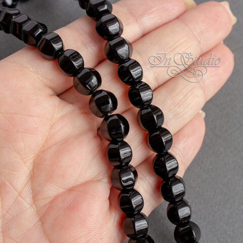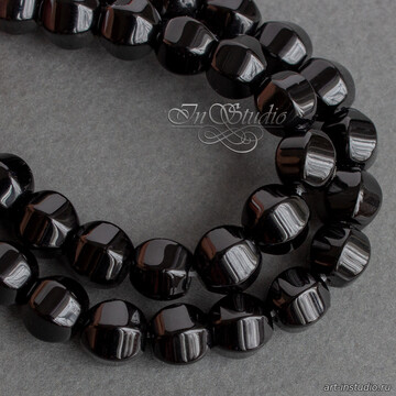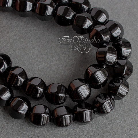 Бусины из натурального черного мориона округлые с крупными гранями в форме фонарик или тыква.