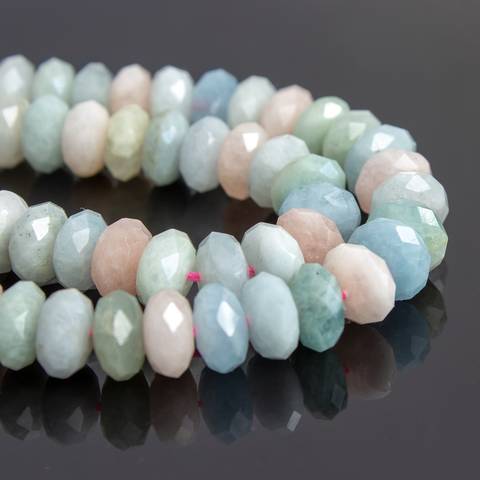 Бусины рондели с огранкой из природного берилла нежных пастельных пудровых оттенков и цветов. Высокое качество, ювелирная огранка