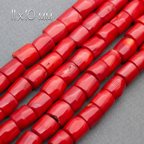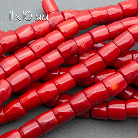 Коралл красный натуральный 10-11 мм бусины фриформ цилиндры
