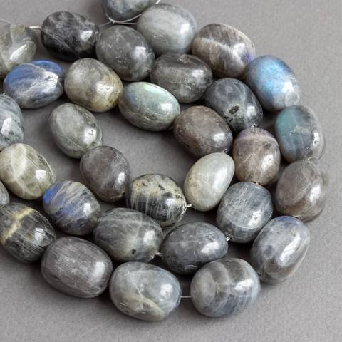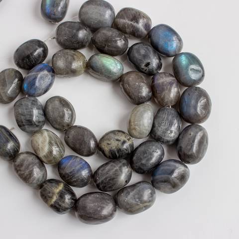 Крупные бусины галтовка из натурального лабрадора серого цвета с красивыми синими, голубыми и золотистыми бликами, переливами.