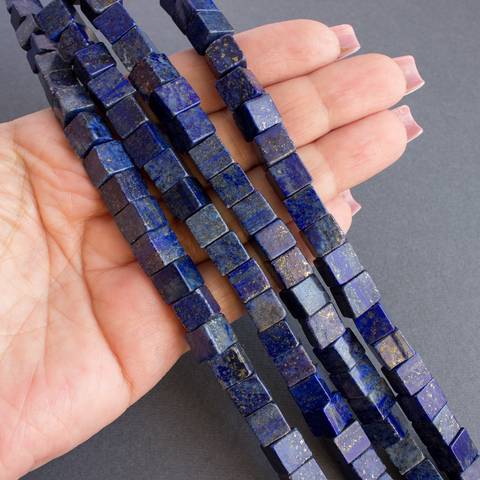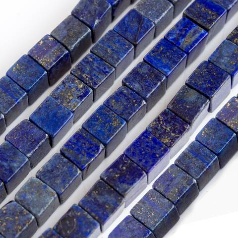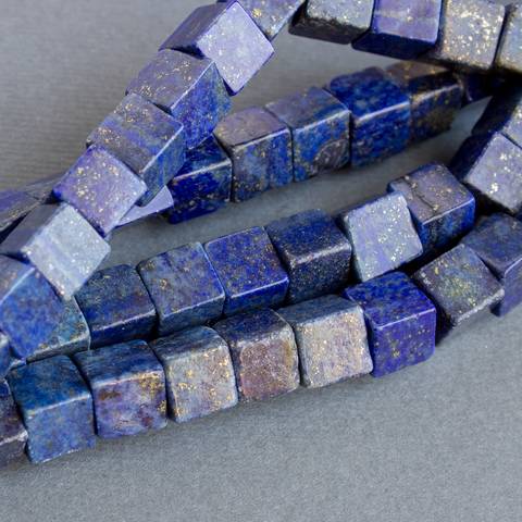 Квадратные бусины кубики 8х 8 мм из натурального камня - лазурит с пиритом насыщенного синего цвета с золотистыми вкраплениями пирита.