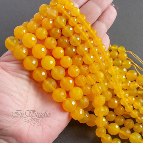 Бусины с огранкой из желтого халцедона для изготовления бус, ожерелий, браслетов, колье и сережек.