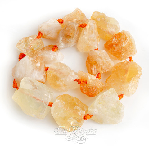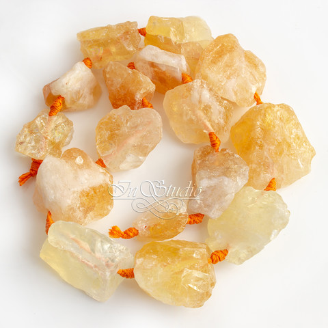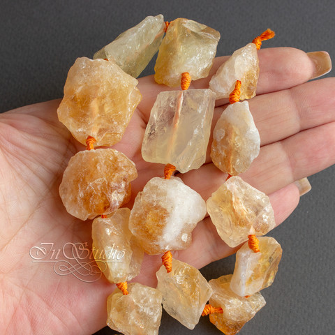 Крупные бусины натурального необработанного цитрина. Бусины "куски" из природного камня с отверстием для нанизывания без обработки.