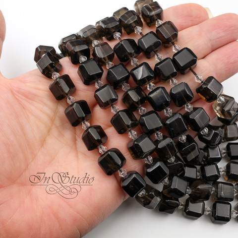 Дымчатый кварц или другое название раухтопаз - бусины формы куб, кубик из натурального камня.