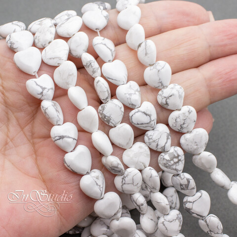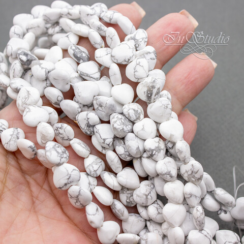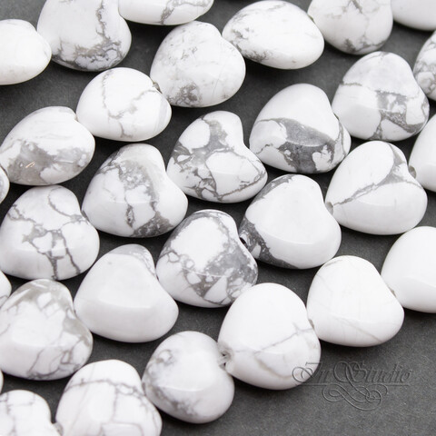 Кахолонг - бусины сердце, сердечки из натурального камня. Бусины белые с серыми мраморными прожилками.