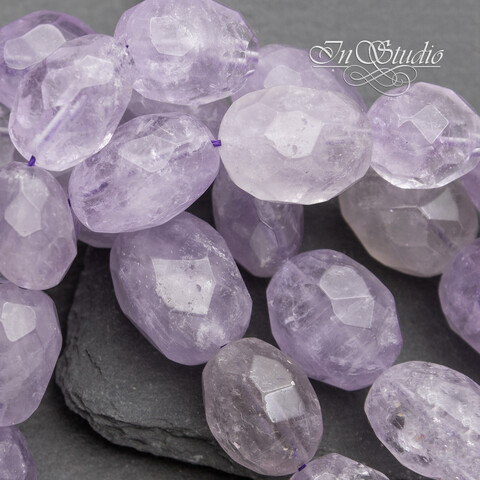 Аметист лавандовый светлый 18-19 мм бусины оливки с огранкой