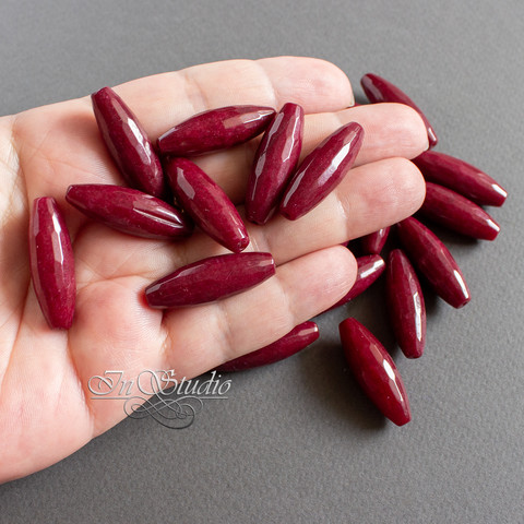 Агат бордовый 30х10 ограненный бусины оливки веретено