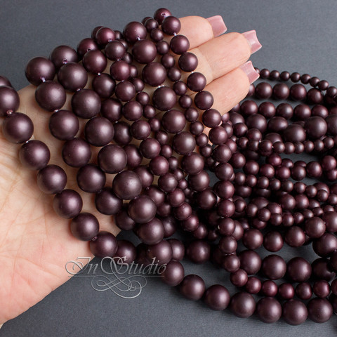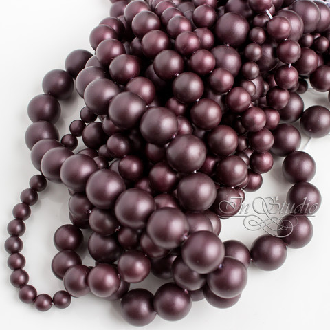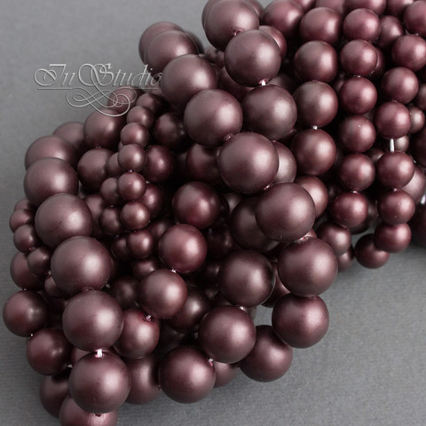 Темно бордовый цвет с оттенком бургундского вина насыщенный жемчуг Майорка с шелковистой полуматовой поверхностью.