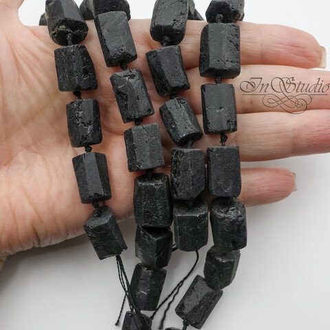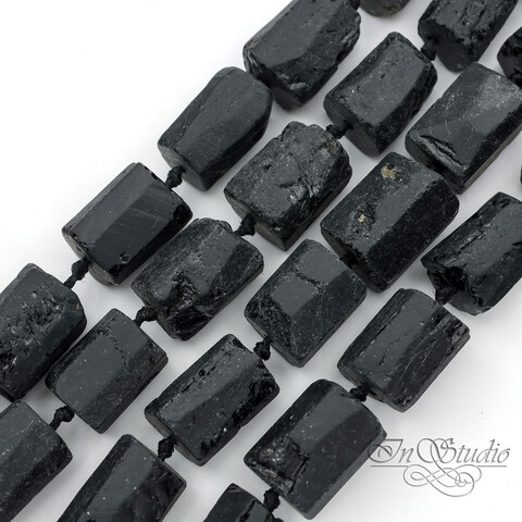 Натуральный природный необработанный шерл - черный турмалин. Бусины турмалина хорошего качества.