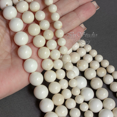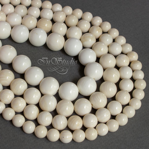 Бусины из натурального белого коралла. Цвет бусин молочно белый, кремово-белый, светло-светло бежевый.