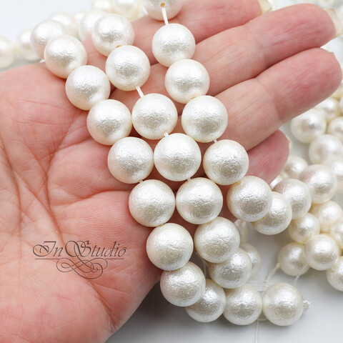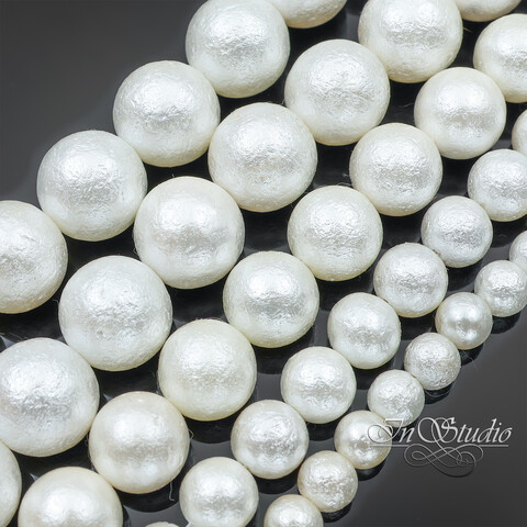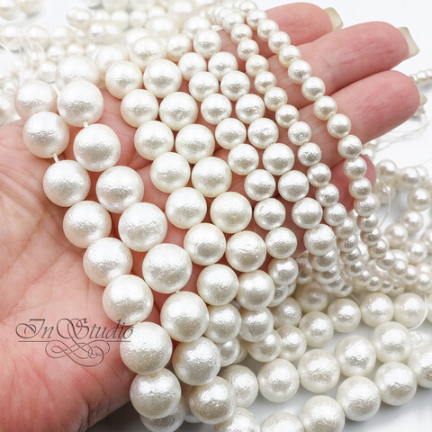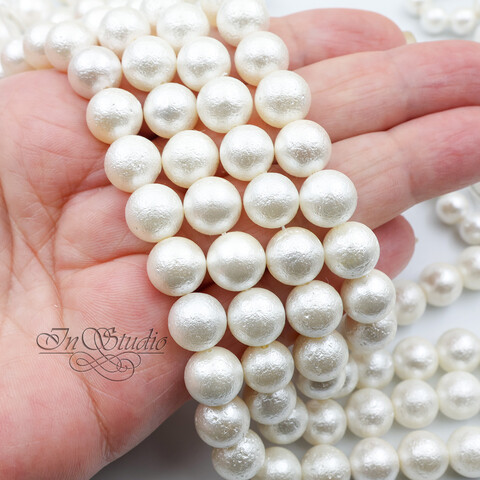 Фактурный белый жемчуг Майорка. Цвет белый с металлизированным блеском.