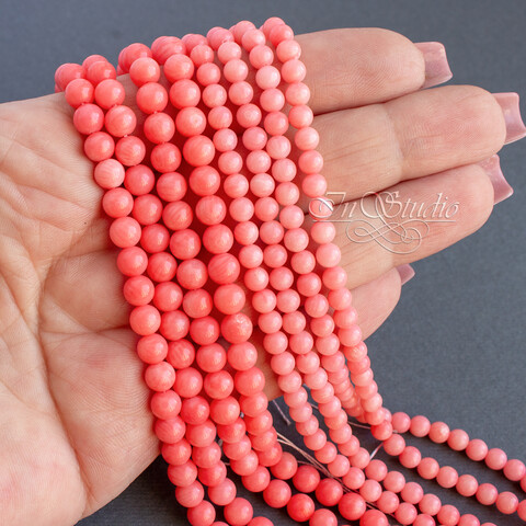 Коралл розовый натуральный бусины шарики 7 мм