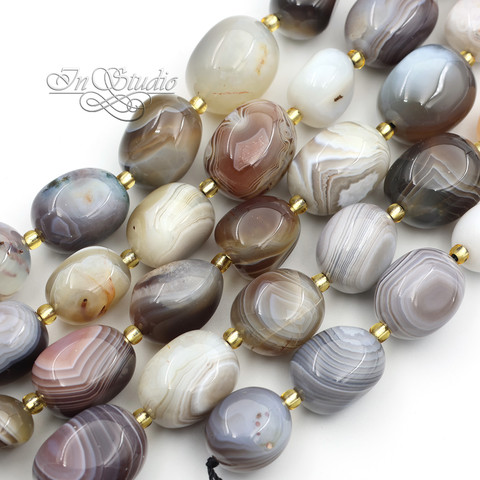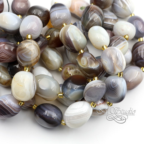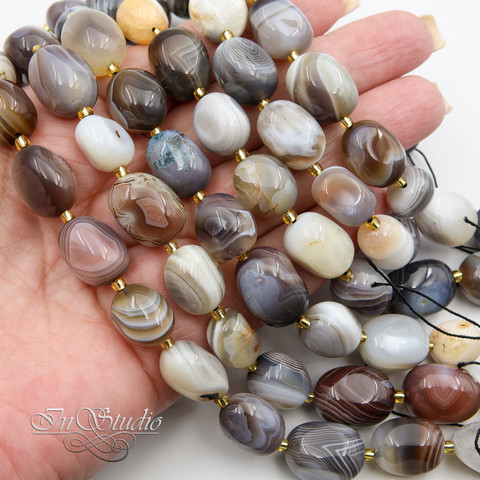 Крупные бусины фриформ из натурального полосатого Ботсванского агата - серые с сиреневым и коричневым оттенком.