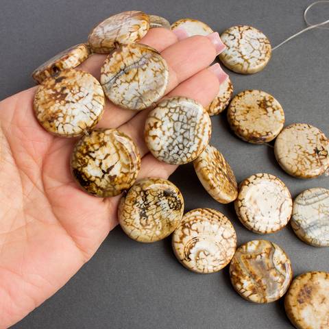 Агат леопардовый 30 мм крупные плоские круглые бусины