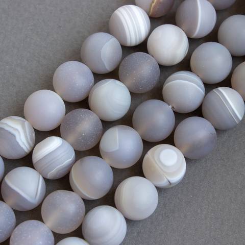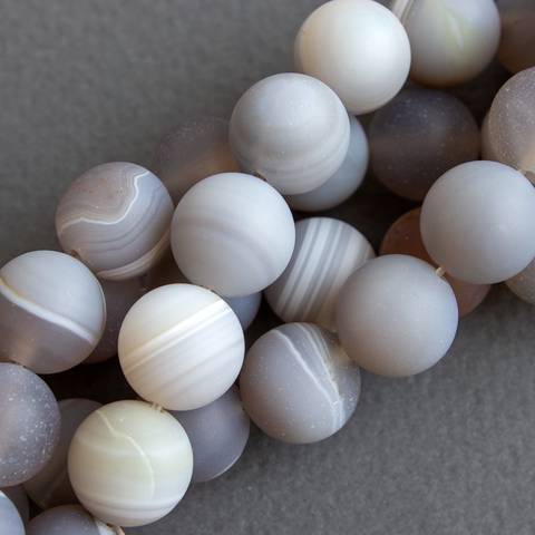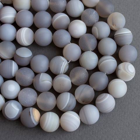 Бусины матового агата светло серого цвета с полосами светлых оттенков. Матовая шелковистая поверхность бусин очень приятна на ощупь.