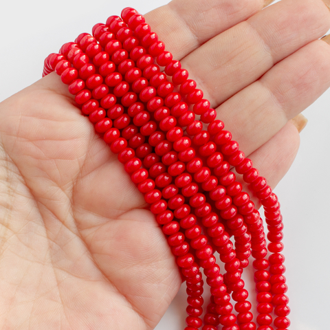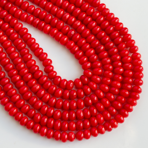 Бусины формы округлый рондель из коралла красного насыщенного цвета. Гладкие, полированный, очень хорошего качества.