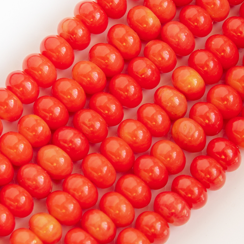Бусины формы округлый рондель из коралла оранжевого насыщенного цвета. Гладкие, полированный, очень хорошего качества.