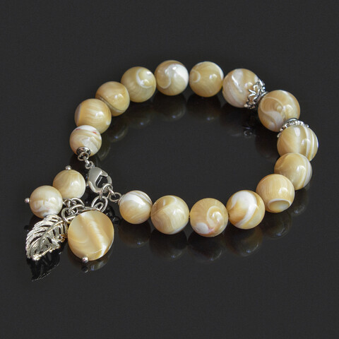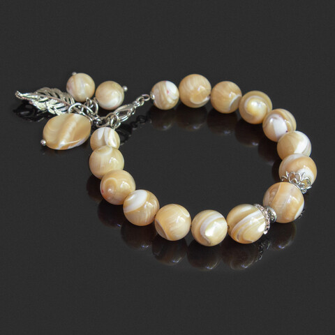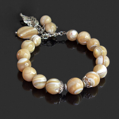 Браслет Августина с натуральным перламутром светло бежевого, сливочно - карамельного цвета.