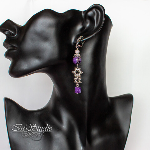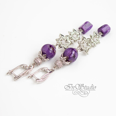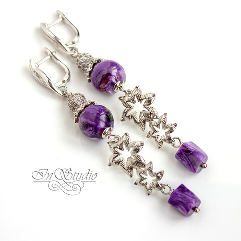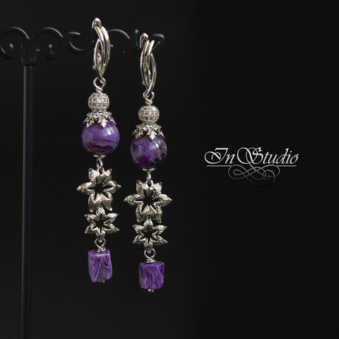 Эффектные и очень элегантные серьги с чароитом - прекрасный подарок себе любимой или дорогому человеку.