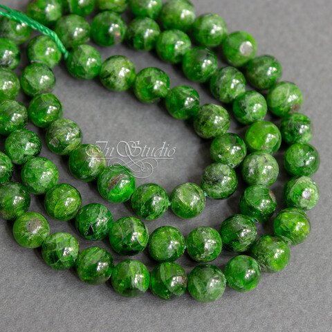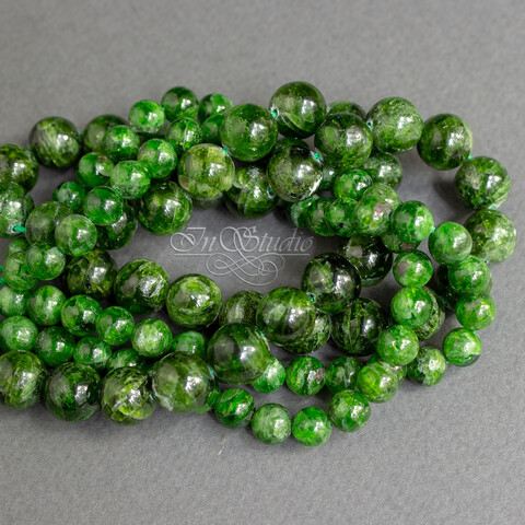 Хромдиопсид 8 мм зеленые круглые бусины из натурального камня