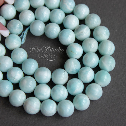 Бусины 8 мм из натурального Ларимара светло-голубого оттенка.