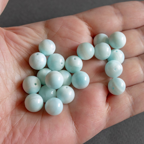 Бусины 10 мм из натурального Ларимара светло-голубого оттенка.