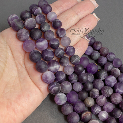 Матовые бусины натурального аметиста насыщенного темно фиолетового цвета, в форме шара.