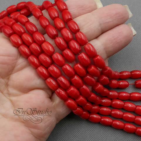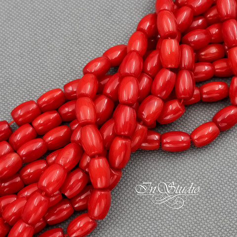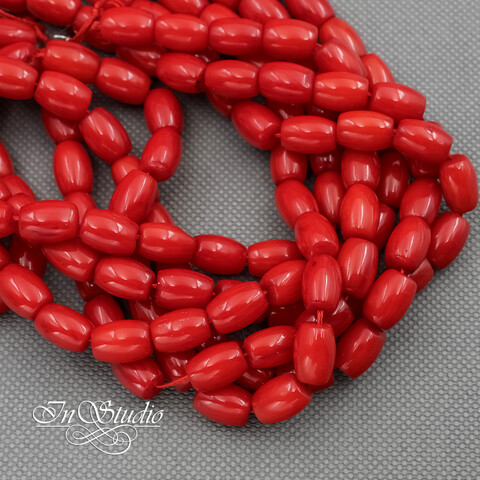 Бусины из натурального красного коралла форма - оливки, бочонки.