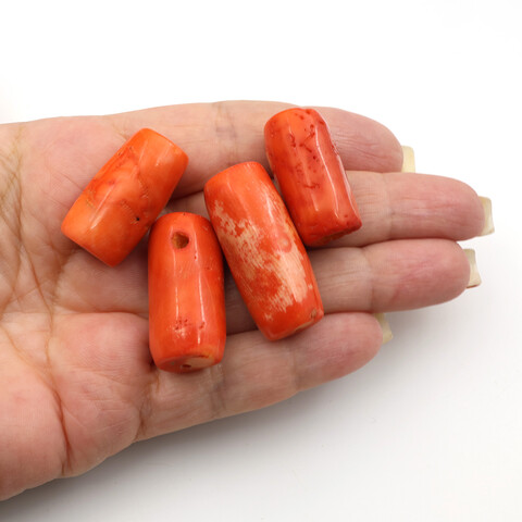 Крупные бусины натурального тонированного оранжевого коралла для изготовления украшений и бижутерии.