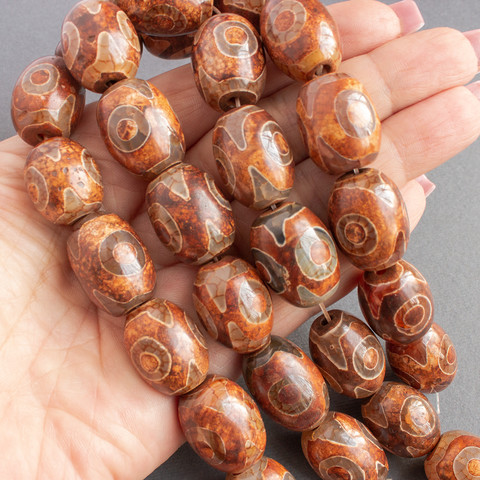 Крупные бусины Дзи - бочонки рыжего, терракотового, коричневого цвета.