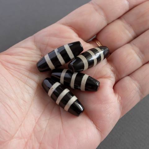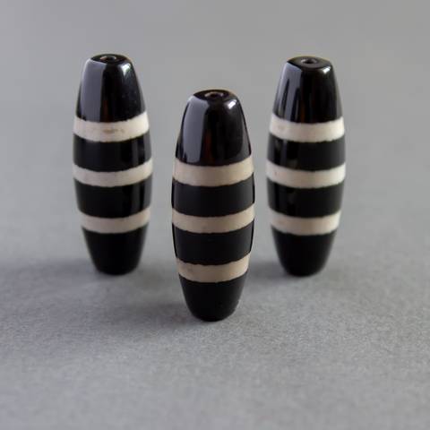 Бусина богатства ДЗИ 30 мм черная с тремя полосками
