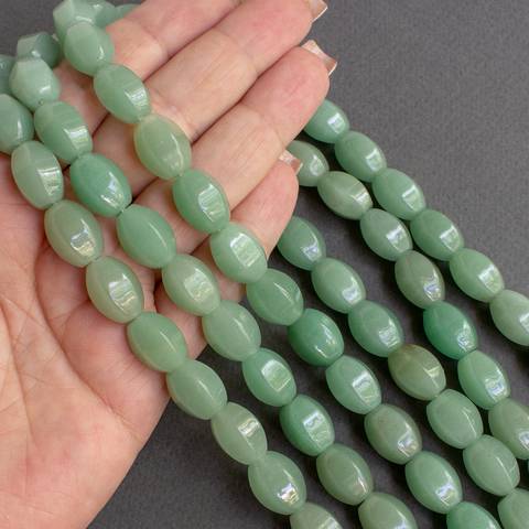 Форма камня - оливки с гранями светло зеленого, травяного оттенка.