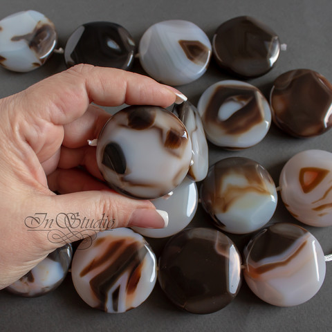 Круглые плоские ОЧЕНЬ КРУПНЫЕ бусины из натурального бразильского агата.