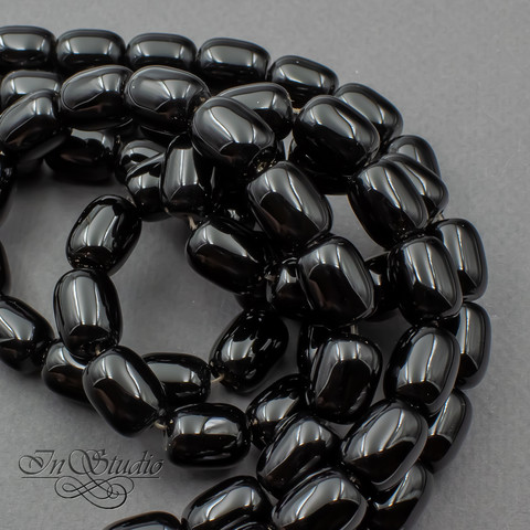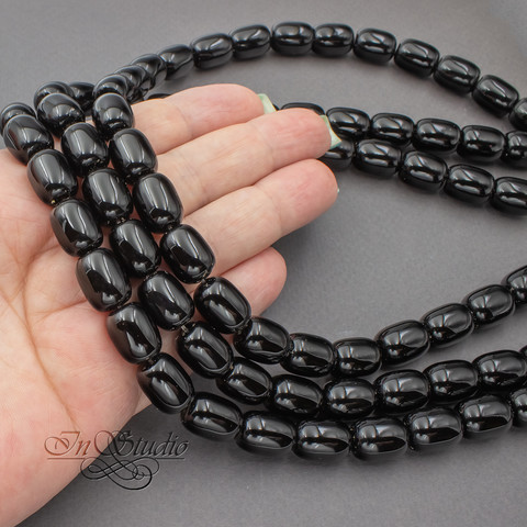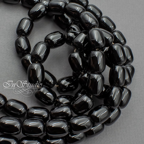Агат черный 14х10 мм овальные бусины оливка, желудь