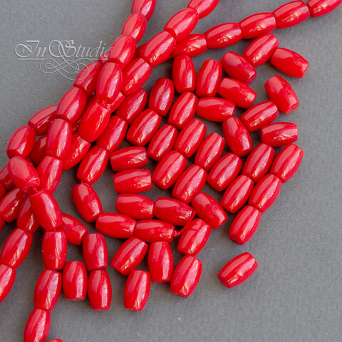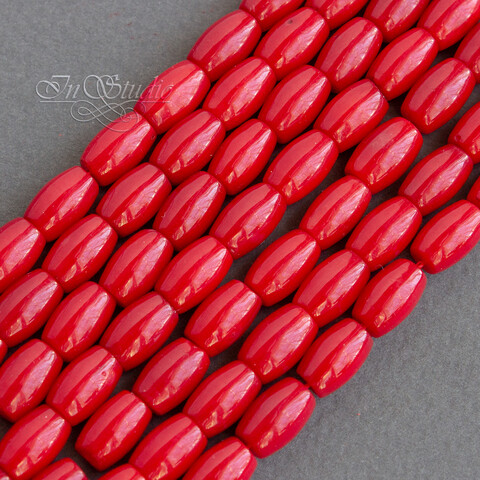 Бусины формы оливка из коралла красного насыщенного цвета.