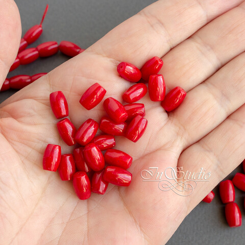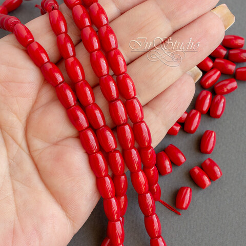 Коралл красный натуральный 8,5х6 мм бусины оливки