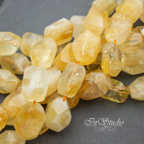 Крупные бусины фриформ с крупными гранями из НАТУРАЛЬНОГО природного не плавленого цитрина..
