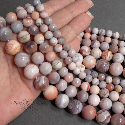 Агат Ботсвана серо розовый 8 10 12 мм бусины шарики