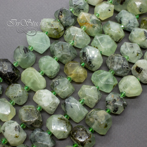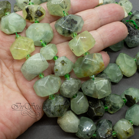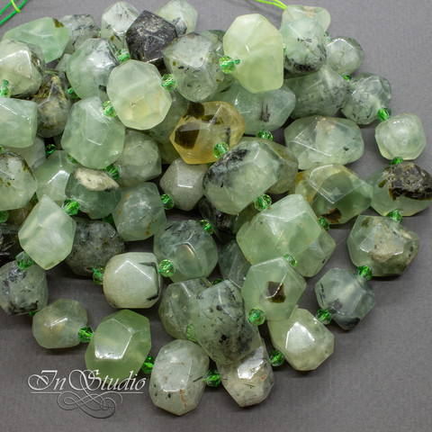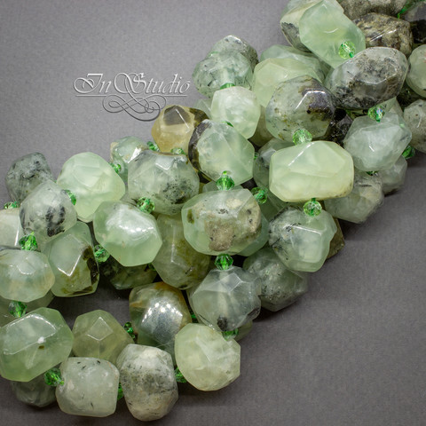 Очень крупные бусины фриформ с гранями из натурального пренита.